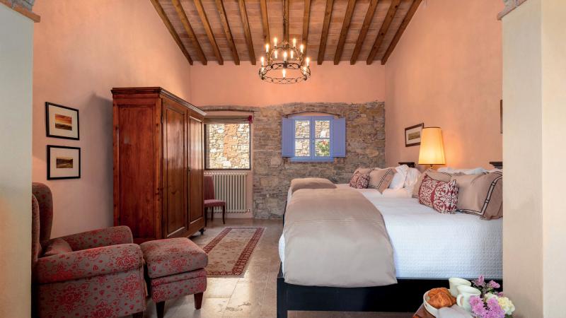 Surrounded by ancient olive groves and framed by rolling vineyards, Villa Regolo Vecchio is one of the estate’s most impressive and expansive residences. Set in a privileged position within the Tuscan countryside, the property offers sweeping views, generous lawns, and an atmosphere of complete privacy and tranquility. Designed for multi-family gatherings or groups who value both shared spaces and individual independence, the estate is composed of a three-bedroom main residence and two independent one-bedroom guest houses. The layout provides flexibility and comfort while maintaining the charm of a traditional Tuscan farmhouse.