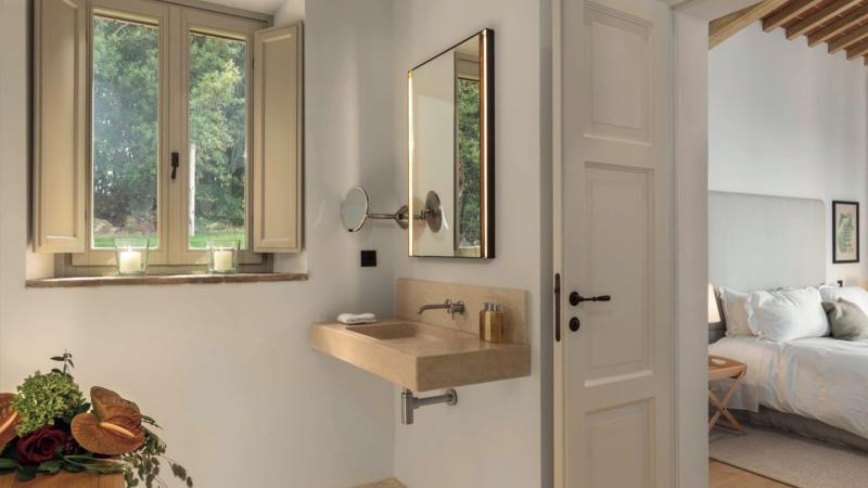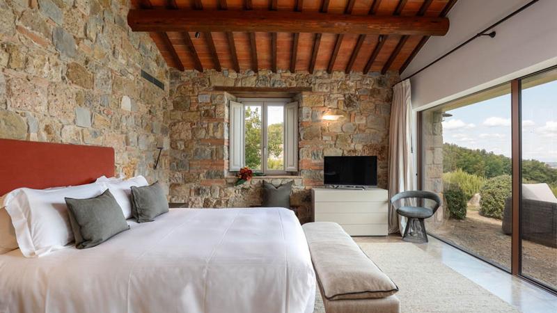 A refined Tuscan estate designed as a true gathering place for family and friends, Villa Valdora combines the charm of a classic farmhouse with contemporary elegance. Composed of a 3-bedroom main residence and a 2-bedroom guest house, the property enjoys breathtaking hillside views and a beautifully cascading layout that enhances both privacy and connection. As the levels descend along the natural slope, expansive outdoor spaces unfold seamlessly. Terraces open one into another, creating a fluid indoor-outdoor lifestyle. The pergola overlooks the sunbathing area, which gracefully wraps around a stunning heated glass-tiled infinity pool, offering panoramic countryside views and a spectacular setting for relaxation. Interiors are warm yet sophisticated, perfectly suited for both intimate gatherings and larger celebrations. With five beautifully appointed suites, generous common areas and multiple fireplaces, the residence offers comfort in every season.